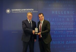 O Υπουργός Μετανάστευσης και Ασύλου Θάνος Πλεύρης συναντήθηκε σήμερα με τον υφυπουργό Μετανάστευσης της Κυπριακής Δημοκρατίας Νίκο Ιωαννίδη, με αντικείμενο τις εξελίξεις στο μεταναστευτικό και την ενίσχυση της συνεργασίας Ελλάδας και Κύπρου. Κατά τη διάρκεια της συνάντησης, οι δύο πλευρές εστίασαν στη λειτουργία των μηχανισμών επιστροφών και στην αποτελεσματική εφαρμογή του ισχύοντος ευρωπαϊκού κανονιστικού πλαισίου.