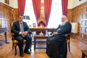 Ο Υπουργός Μετανάστευσης και Ασύλου, κ. Θάνος Πλεύρης, συναντήθηκε σήμερα με τον Μακαριώτατο Αρχιεπίσκοπο Αθηνών και πάσης Ελλάδος, κ. Ιερώνυμο. Κατά τη διάρκεια της συνάντησης, ο κ. Πλεύρης υπογράμμισε τη βούληση της κυβέρνησης και του Υπουργείου να ενισχύσουν θεσμικά και ουσιαστικά τη συνεργασία με την Εκκλησία της Ελλάδος, ιδίως σε ζητήματα κοινωνικής φροντίδας και στήριξης