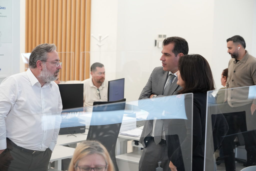 Ο Υπουργός Μετανάστευσης και Ασύλου, κ. Θάνος Πλεύρης, επισκέφθηκε σήμερα το Κέντρο Λήψης Βιομετρικών Δεδομένων Πειραιά, όπου ενημερώθηκε για τη λειτουργία και τις διαδικασίες που εφαρμόζονται στο πλαίσιο της καταγραφής των στοιχείων των πολιτών τρίτων χωρών.